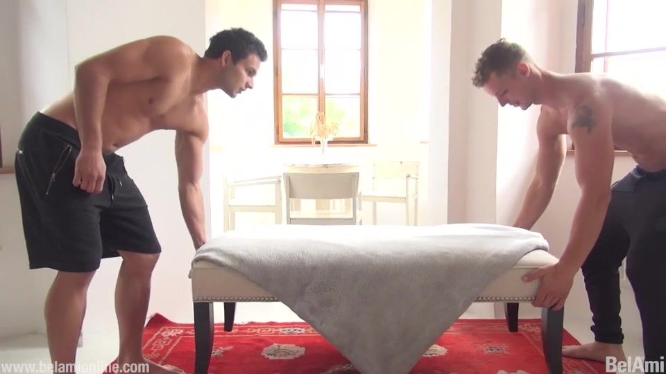 When you search for it, there is always an opportunity to fuck. At least that is the philosophy that Marc Ruffalo brings to the set. Today he is recruited by Adam to help move some furniture, and as the task is none too demanding, takes his chances at seducing Steve Peyroux, not that he has to try to hard. The upside of making out in a house packed full of hot and horny guys is that there is often someone else who wants to join in, and today it is none other than our own super-hung Joel Birkin. Luckily when it comes to getting fucked, the more the better for horny Steve. Joel and Marc proceed to tag team Steve until he shoots his load and then ends up covered in the cum of the 2 other guys as well.