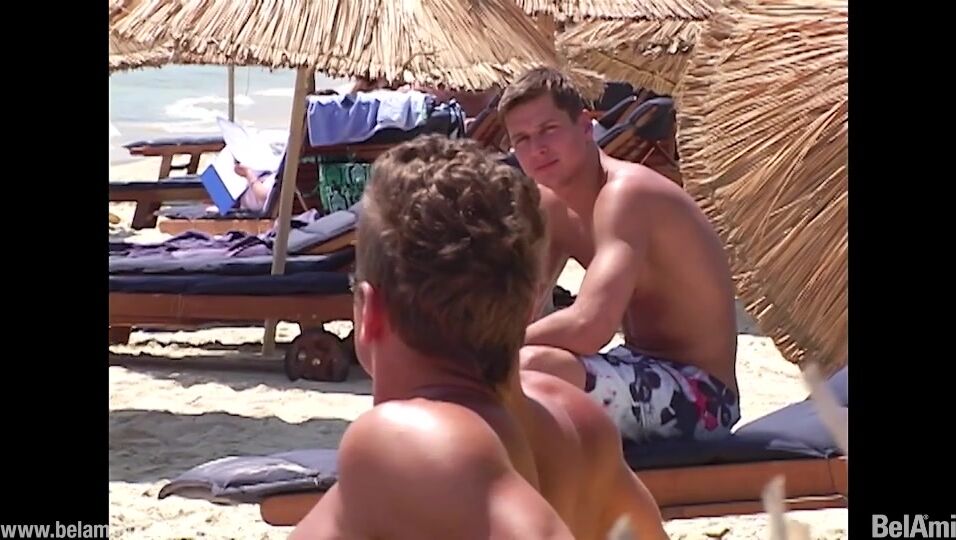 We start today's scene with Tim and Tommy sunbathing on the beach. It does not take Tommy long to shed his indifference to Brandon when Tim heads off back to their house.