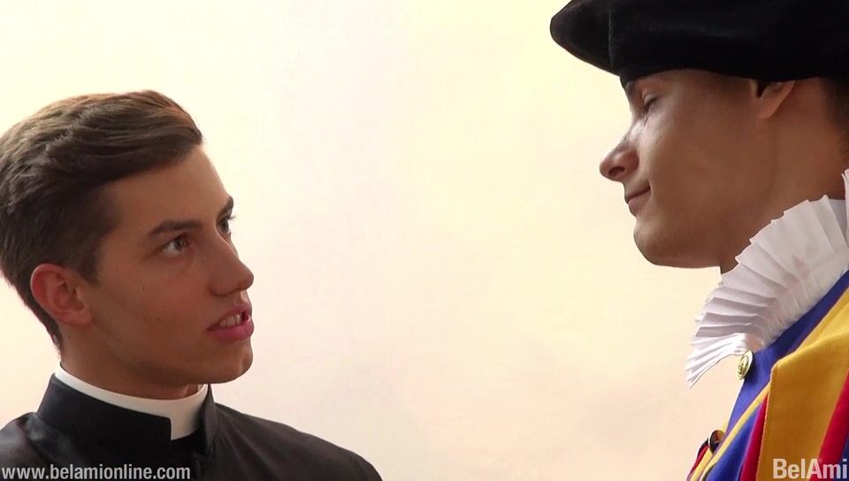 Our young Brother Massimo arrives as Monsignor Fellatione is receiving his divine dicking from Guardsman Leccari. Finding Captain Penitrati forsaken, the two adjourn for their own rapturous rendezvous.